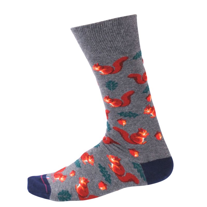 Chaussettes en coton épais représentant des écureuils roux, un animal agile et hyperactif.