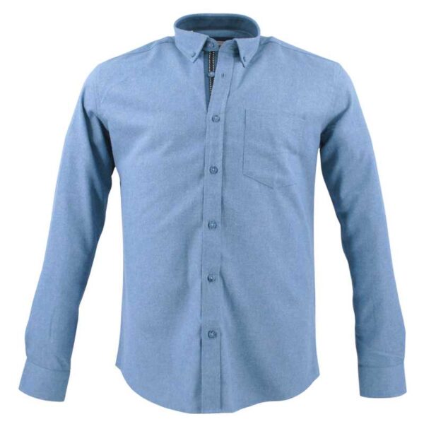 CAPTEN décline sa chemise 100% coton flanelle dans de nouveaux coloris dont ce bleu jean. Une chemise confortable par sa coupe droite et visuellement jolie avec son patch sur la patte de boutonnage.
