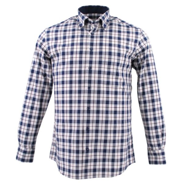 Cette chemise es coton twill à la propriété sans repassage restera élégante toute la journée. Elle arbore un carreau actuel et réhaussé par des manchettes marines si vous souhaiter remonter le poignet. Une chemise homme qui vous servira à de nombreuses occasions. chemise avec un col boutonné et une poche poitrine.