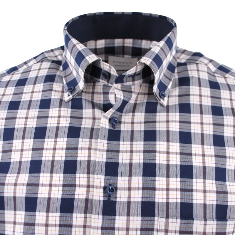 Chemise homme ETERNA carreaux marine et beige Modern Fit