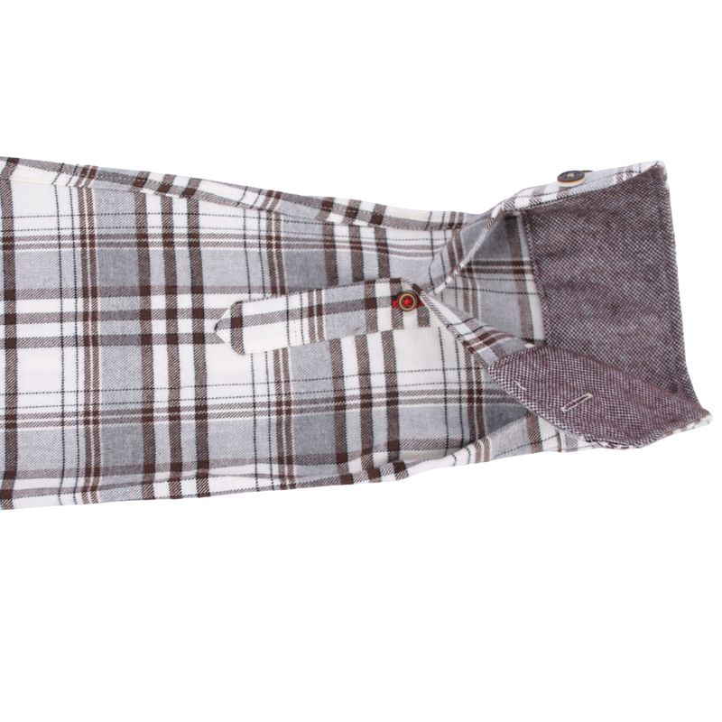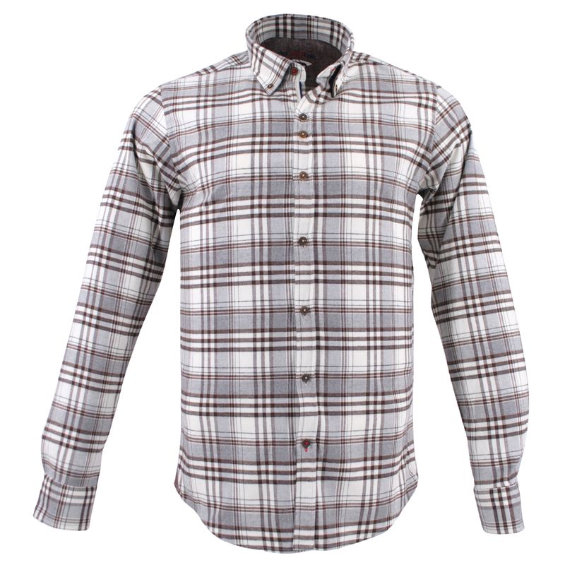 la marque espagnole THE SURFCAR vous propose une chemise en coton flanelle, une épaisseur idéale pour l’automne et l’hiver. Sa couleur écru, gris et marron permet de l’accorder avec les tons gris, beige, camel, ocre, marron, kaki. Une chemise avec un col boutonné et un revers de poignet moucheté marron.