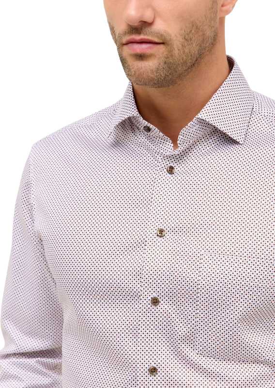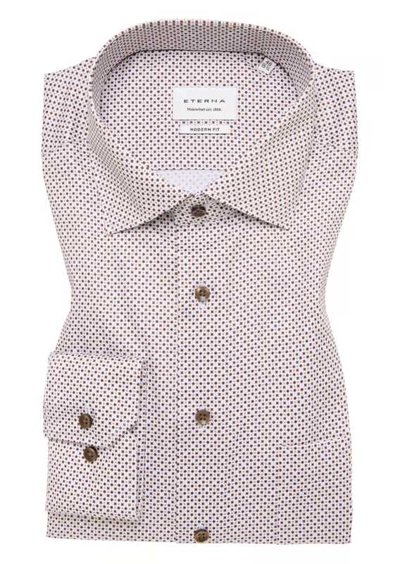 chemise 100% coton sans repassage représentant un motif discret marron. Une chemise avec une poche poitrine. Chemise de la marque allemande ETERNA dans sa coupe Modern Fit. Le coton est tissé de façon armuré et satiné.