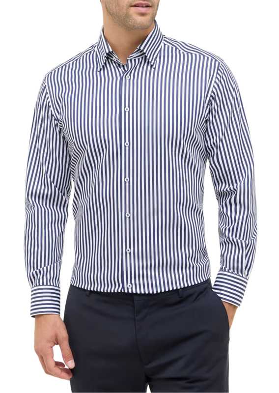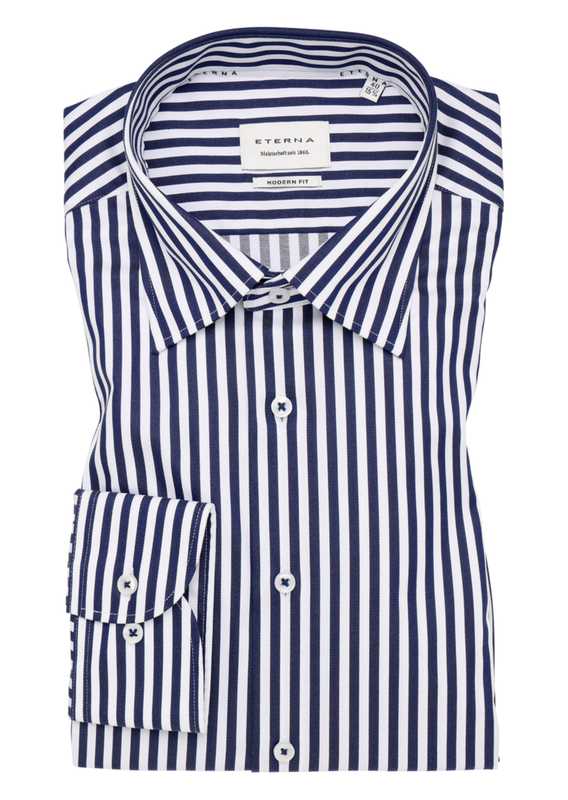 Le col de cette chemise homme a un col avec un boutonnage masqué par le col. Chemise coupe "Modern Fit" ETERNA. C'est la coupe qui convient à la grande majorité de nos clients. Chez ETERNA vous retrouverez aussi la coupe "Slim Fit" (ajustée) et la coupe "Comfort Fit" (très large).