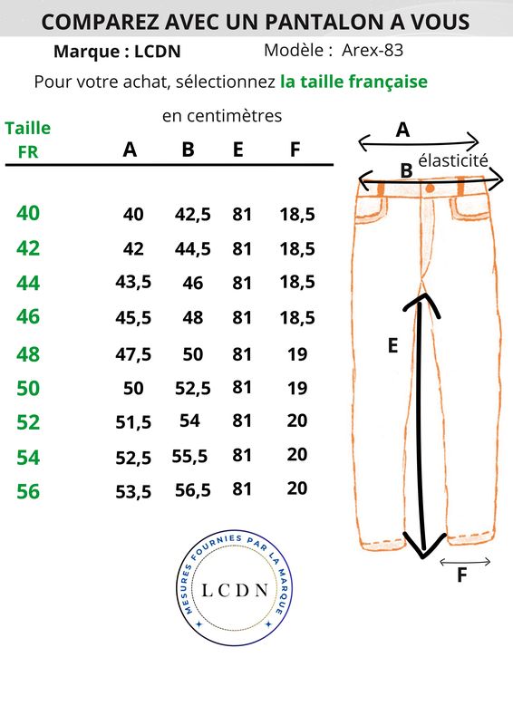 Si vous recherchez un pantalon chaud, nous vous conseillons ce modèle en coton au touché peau de pêche. Un pantalon en coupe élancée moderne de la marque LCDN. Ce pantalon est dans une couleur verte kaki très tendance et aussi facile à accorder que le bleu foncé.