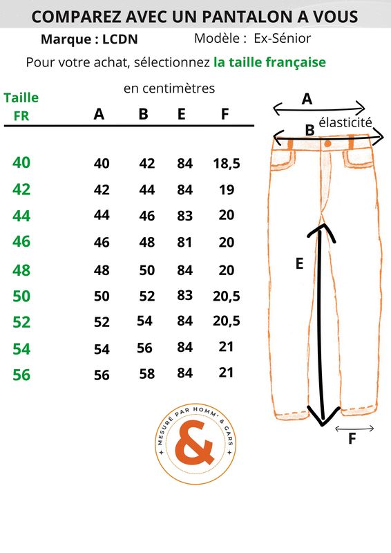 modèle Sénior Slim 1X2, série Cord Lycra-Ex, couleur 4