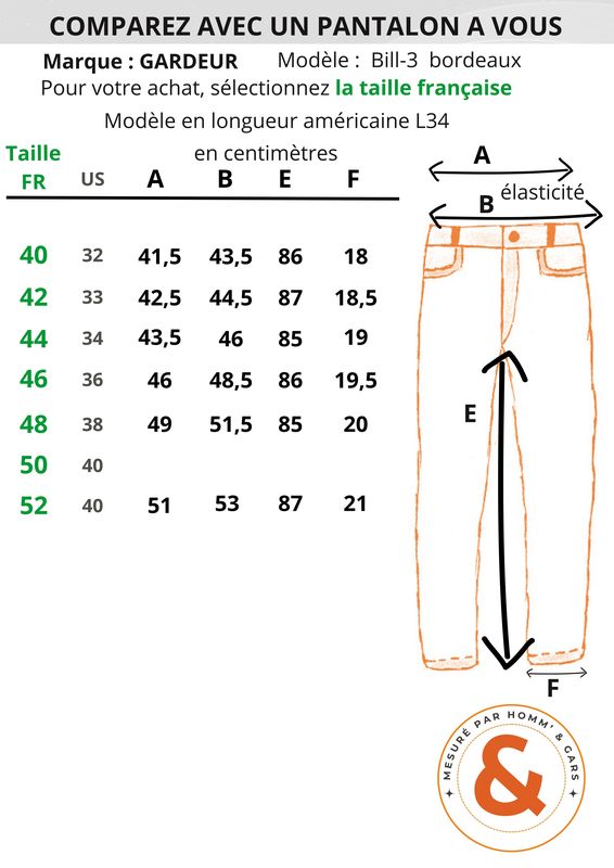 Pantalon taillé en taille américaine, regardez notre guide des tailles pour sélectionner votre taille française.