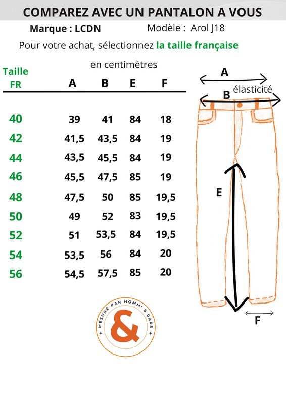 Pour les tailles 50, 52, 54 et 56 étudiez notre guide des tailles car il taille petit donc vous opterez peut-être pour la taille supérieure.