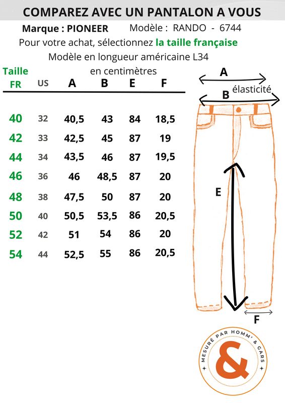 Le jean noir reste un basique de son armoire. Ce modèle PIONEER est un modèle automne – hiver en coton stretch (gamme Mégaflex). Il est confortable au niveau de la ceinture car elle est extensible. Un modèle en coupe régular, le Rando