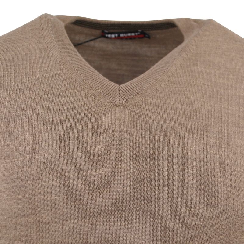 pull laine acrylique col V BEST GUEST beige foncé 314V