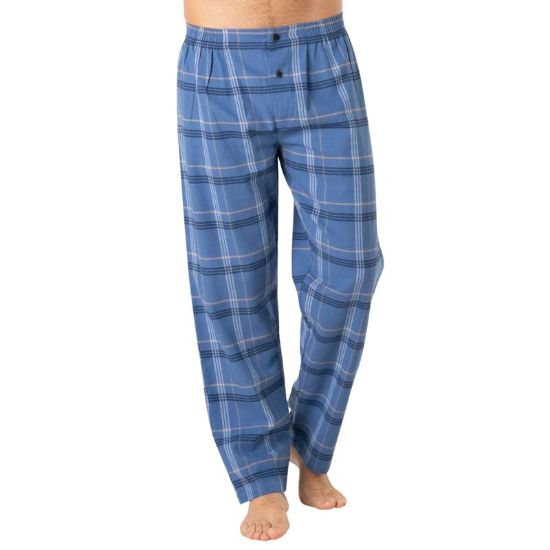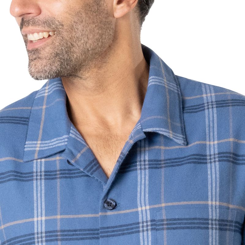 Pyjama homme forme ouverte et boutonné EMINENCE en flanelle carreaux bleus