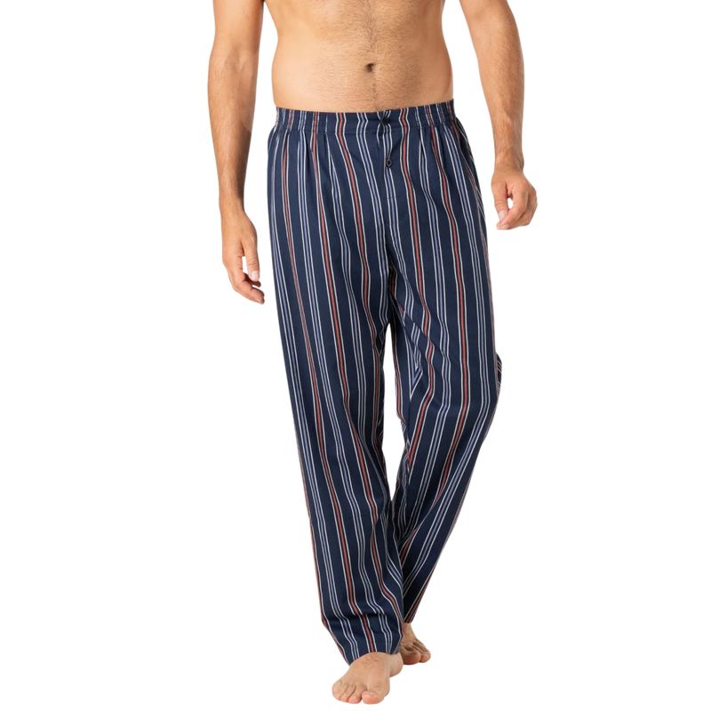 Pyjama Long veste boutonnée rayée en popeline bleu et orange EMINENCE