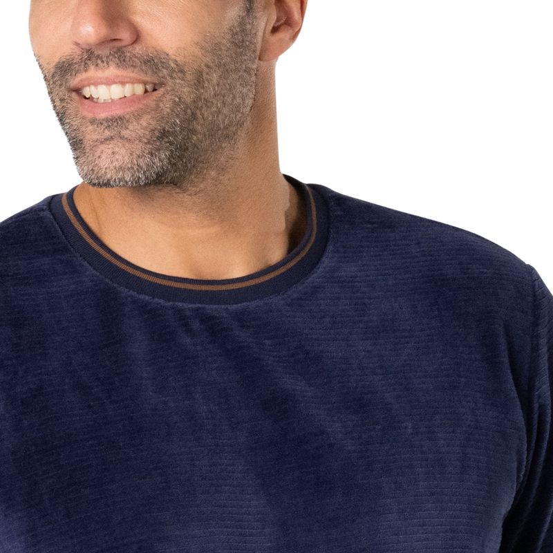 EMINENCE est reconnu pour la qualité des matières et du confort de ses pyjamas en velours. Un haut du pyjama est en forme jogging avec les poignets resserrés, même chose au niveau des chevilles du pantalon.