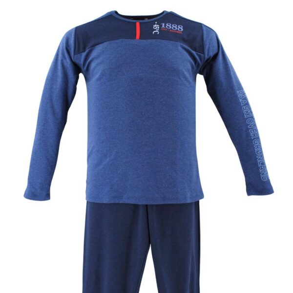 Cette tenue composée d’un haut en col rond avec des inscriptions donnant un style sport. Le pantalon est dans la même matière que le t-shirt. L’entrejambe du pantalon est de 78 centimètres.